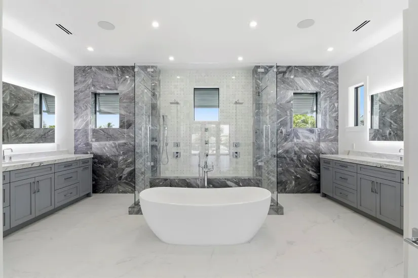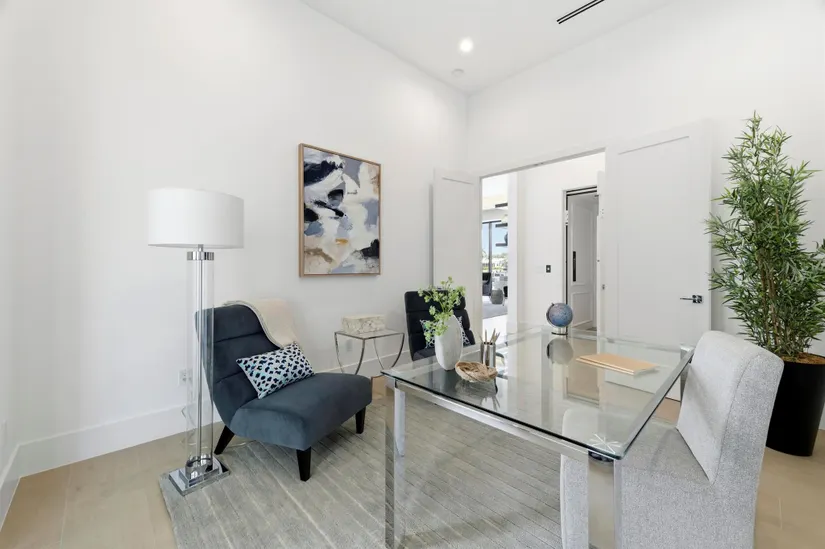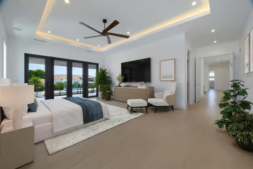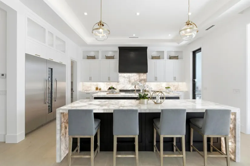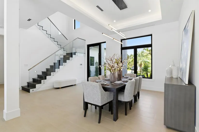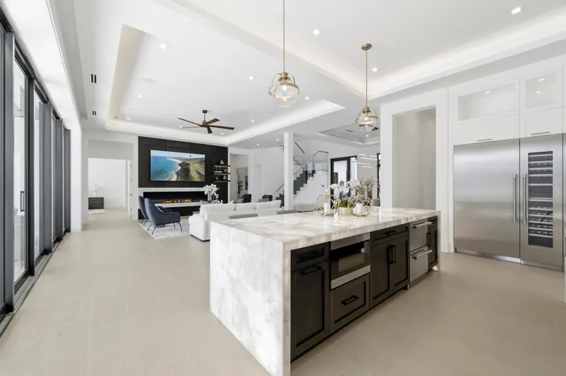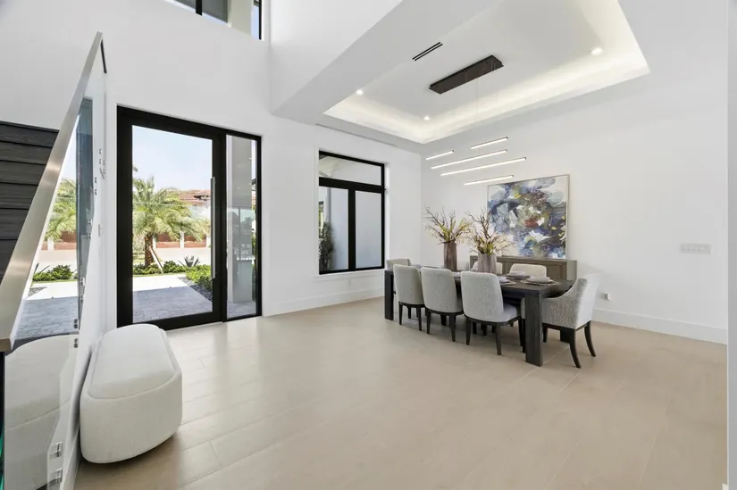 Modern Waterfront Estate in The Village of North Palm Beach. Discover a masterpiece of modern living in this stunning custom Vista Builders new construction home in North Palm Beach. Nestled in a prime waterfront location with direct ocean access, this exquisite 5-bedroom, Theater (Optional 6th bedroom),7-bathroom residence offers the ultimate in luxury and comfort. Indulge in 5,804 square feet of living space, including two gorgeous master suites. The gourmet kitchen, equipped with a Thermador appliance package and dual islands with backlit Cristallo Quartzite countertops, are stunning. The kitchen offers a convenient butler's pantry for effortless entertaining as well as multiple beverage and wine coolers.